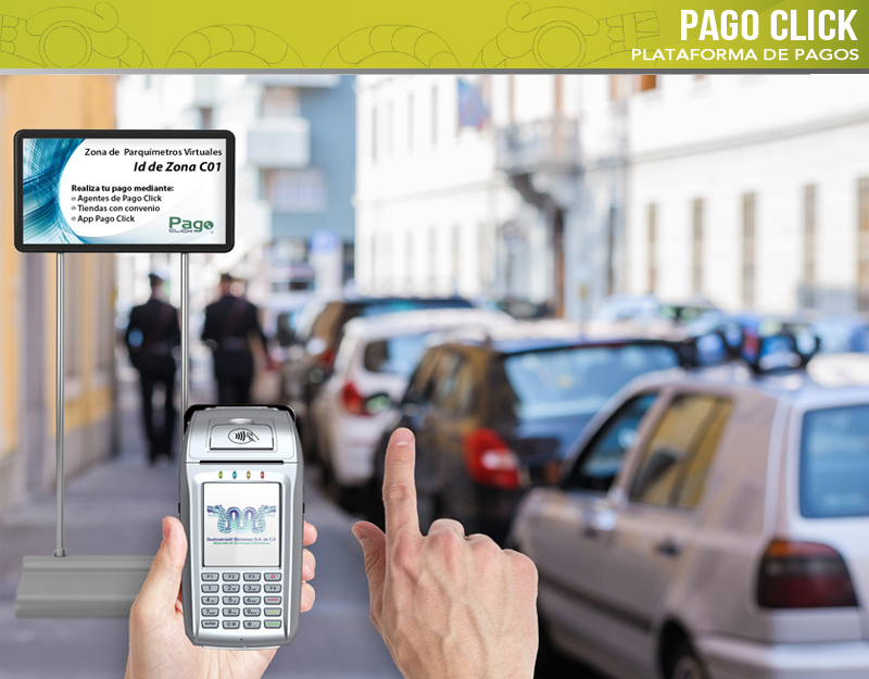 Pago Click® es una plataforma informática de pagos electrónicos con tarjetas bancarias, que tiene como objetivo incrementar y transparentar los ingresos mediante la multiplicación de receptorías itinerantes.