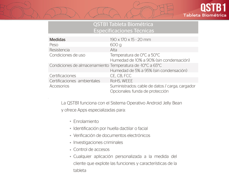 Presentamos la QSTB1, una tableta / terminal táctil compacta que garantiza la seguridad de las operaciones móviles empleando biometría(huellas dactilares + rostro) y funciones criptográficas. Portabilidad, confiabilidad y seguridad se combinan en un único dispositivo, lo que permite ofrecer servicios confiables, independientemente del uso, el momento o el lugar.